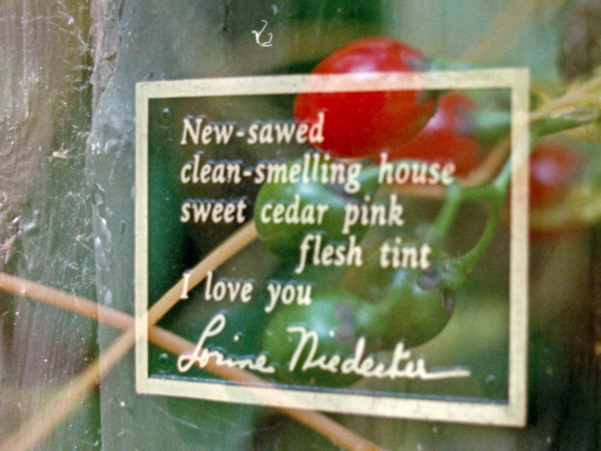 From her home in Blackhawk Island WI, poet Lorine Niedecker traded lively and impactful letters with numerous peers, most notably Louis Zukofsky and, later, Cid Corman. After a brief sojourn in New York, she lived alone in a one-room cabin for much of her adult life, walking several miles to nearby Fort Atkinson to work as a copy editor at a dairy industry newsletter until failing eyesight reduced her to menial labour. Niedecker connected to the outside world by post, and among the small shelf of books she kept for herself were several collections of letters, including those of the composer Franz Liszt and his lover, the scholar Marie Catherine Sophie, Comtesse d'Agoult. Letter from Blackhawk Island assembles images and sound gathered on the small plot of land by the Rock River where Niedecker lived, along with ambient audio from the only existing recording of the poet’s voice, into the filmmaker’s own condensed missive of prismatic correspondences.