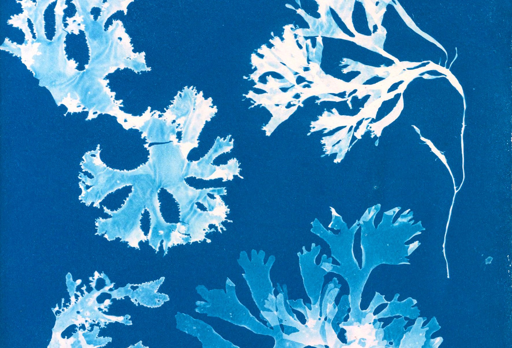 A protist is an organism that is neither animal, vegetable nor fungi. Plant-like protists are called algae—such as those “flowers of the sea” cyanotypes created by Anna Atkins and published in a landmark book in 1843. In a mesmerizing frenzy of images and text, Ghost Protists transforms her images into a protest of the colonial violence that enabled their creation.